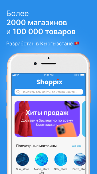 Shoppix är en innovativ mobilapplikation för online shopping som samlar över 1500 butiker från hela Kirgizistan. Med ett användarvänligt gränssnitt gör appen det möjligt för användare att snabbt hitta produkter genom ett enkelt sökverktyg, vilket sparar tid och ansträngning. Användare kan söka efter varor på kartan och få information om närliggande butiker som erbjuder det de letar efter. Med över 20 olika butikskategorier, inklusive kläder, elektronik och böcker, täcker Shoppix en bred mångfald av shoppingbehov.